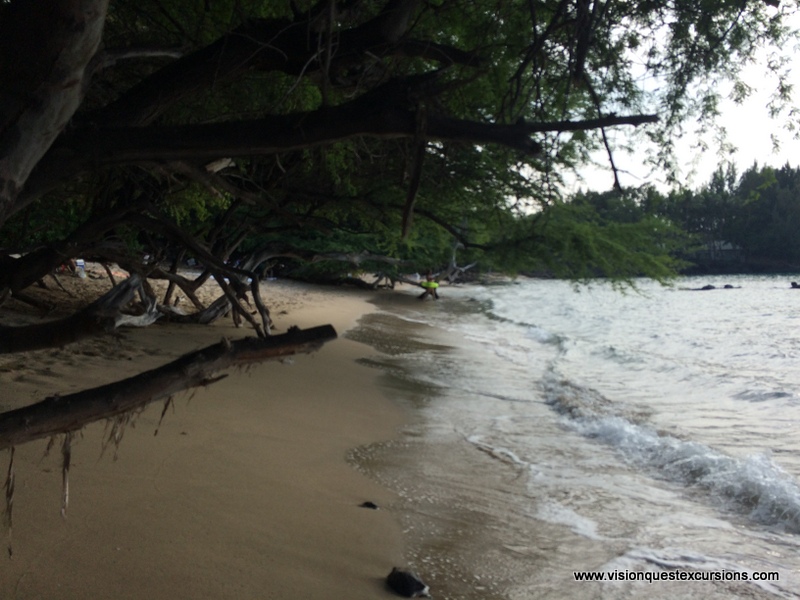 Heading north on Highway 19, our first stop is the Hapuna State Park near the Puako Bay. Take a left off of 19 towards Puako, and then take the first right. The road narrows and soon you will come to a sign designating the park, and the parking area is an immediate left. There is a $5 fee to park here which can be paid at an automated kiosk. The beach here is smaller than the main beach a little farther north, but absolutely amazing and a perfect place to sit and relax, swim, read, or meditate. The many trees make for secluded areas and this section of the beach is my favorite.